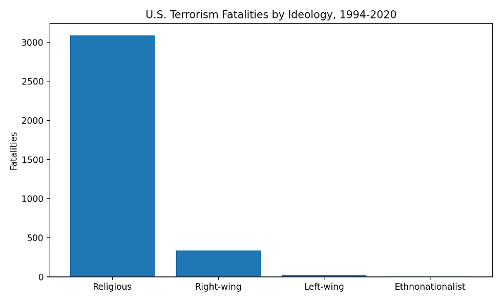Figure 5. U.S. terrorism fatalities by ideology, 1994–2020.